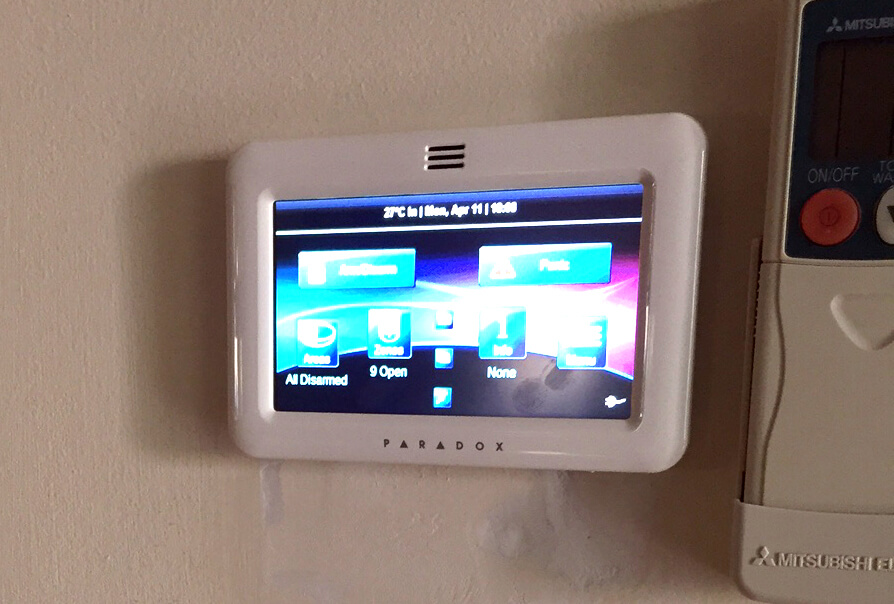 Εσωτερικοί ανιχνευτές ψηφιακοί τριπλής τεχνολογίας και ασύρματες μαγνητικές επαφές σε επικοινωνία με ασύρματους δέκτες αμφίδρομης επικοινωνίας κάλυψαν το κενό της ανεπαρκής καλωδίωσης. Πληκτρολόγια Touch Screen υψηλής αισθητικής για τον χειρισμό του συστήματος, ασύρματες εξωτερικές σειρήνες και ειδικοί ανιχνευτές για την αντιμετώπιση συμβάντος πλημμύρας και φωτιάς τοποθετήθηκαν σε χώρους υψηλής επικινδυνότητας της κατοικίας. Για την ολοκληρωμένη κάλυψη του χώρου τοποθετήθηκε σύστημα περιμετρικής προστασίας αποτελούμενο από ασύρματα εξωτερικά αισθητήρια τελευταίας τεχνολογίας με προστασία antimasking τα οποία συνδέθηκαν στο κεντρικό σύστημα.